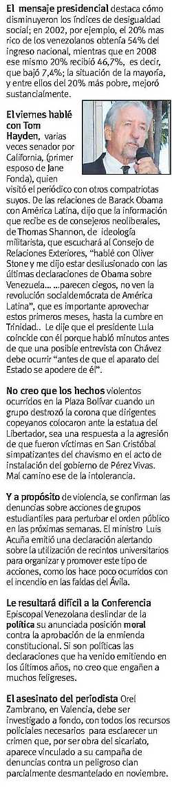 Y a propósito, de los tres diarios a los cuales la Cancillería venezolana les demandó el derecho a réplica, La Stampa fue el único que le dio amplia acogida, El Mundo español apenas la publicó y en New York Times se leía con lupa. Pocos diarios en el mundo (Últimas Noticias, entre ellos) y ninguna Constitución, salvo la de Venezuela, reconocen el derecho a réplica.