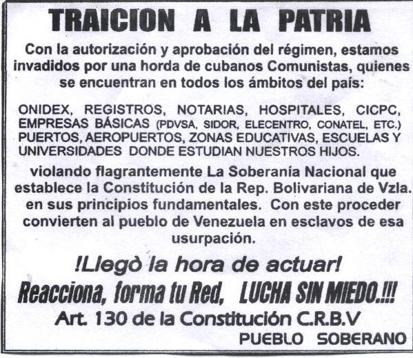 En el marco de los señalamientos hechos por José Vicente en su programa, la oposición, tanto la "democrática" como la que no lo es, no logran vencer los complejos frente a grupos aventureros que no pierden ocasión de chantajearla y tratan de promover mediante estos panfletos la sosobra del pueblo venezolano para provocar y tratar de hacerlos caer en el desespero que ellos muestran de sobra.