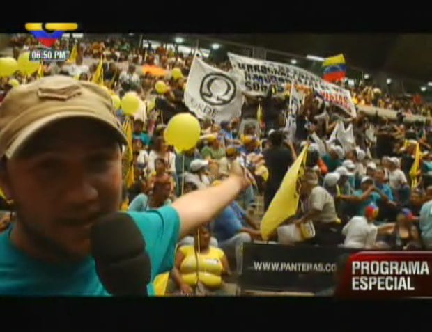 23/10/12.-“El discurso de Ramón Guillermo Aveledo incitando a la violencia, no solamente fuimos agredidos los trabajadores de VTV, también del Correo del Orinoco, porque identificaron a cada uno de los trabajadores del Sistema Nacional de Medios Públicos (SNMP), y luego comenzaron a hacer una especie de cacería de brujas”, denunció este miércoles el comunicador Pedro Carvajalino, al mostrar los videos grabados durante la actividad convocada este miércoles por la MUD en Caracas, y donde se mostró cómo la presencia de jóvenes opositores, con camisas negras, y mostrando una pancarta a favor de Pérez Jiménez, desencadenó una violenta reacción de los oposicionistas.