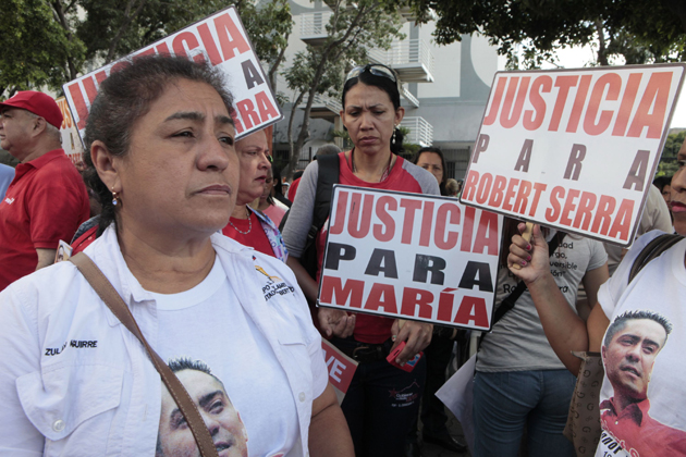 Caracas, diciembre 1º- Familiares y amigos del diputado Robert Serra y su compañera María Herrera, además de organizaciones sociales, introdujeron este lunes un documento ante la Embajada de Colombia en Venezuela para solicitar se acelere la extradición de Leiver Padilla, conocido como “El Colombia”, presunto autor intelectual del asesinato de estos dos revolucionarios.