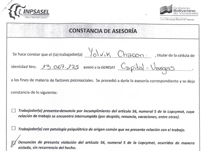 El caso de Yolvik Chacón: acoso laboral en tiempos de revolución