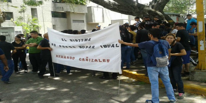 05-17.-Los compañeros músicos del joven Armando Cañizales se reunieron la tarde de este jueves frente a la sede de la Orquesta Sinfónica Juvenil (OSJ) en Quebrada Honda, municipio Libertador de Caracas, para protestar por su muerte ocurrida ayer miércoles durante una de las manifestaciones opositoras.