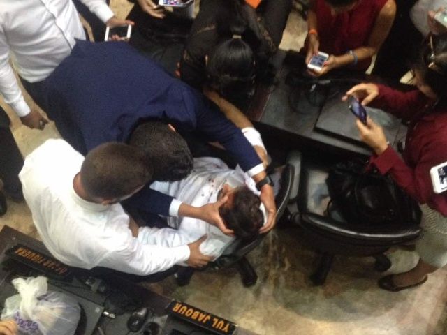 Imagen publicada por la Dip. @delsasolorzano del Diputado Américo De Grazia herido dentro de @AsambleaVE por parte de colectivos pic.twitter.com/suYEGyyGlO