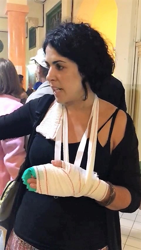 Los agentes halaron de la ropa de Torrecillas, cuyo cuerpo quedó descubierto, mientras la arrastraban escalas abajo, y mientras lo hacían, también le fueron rompiendo los dedos de la mano uno por uno. Se reporta que le hicieron tocamientos en los pechos y se reían delante de la gente presente, según testimonio de la persona víctima de la represión. "Eso es mucha maldad", declaró a Marta entre lágrimas y con la mano vendada después de la agresión.