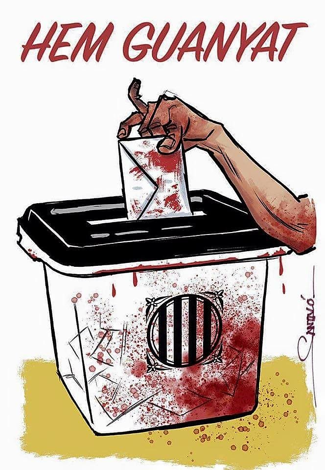 Redes sociales y reporte de ElNacional.CAT(Barcelona), muestran y comentan videos que circulan en Internet, que recogen el momento en que Marta Torrecilla, integrante de una mesa del referéndum independentista en Catalunya, este 1º de octubre, es agredida por la policía española, cuando los funcionarios la derriban y arrastran escaleras abajo, con la falda levantada y luego la toman de una de sus manos y le quiebran los dedos.