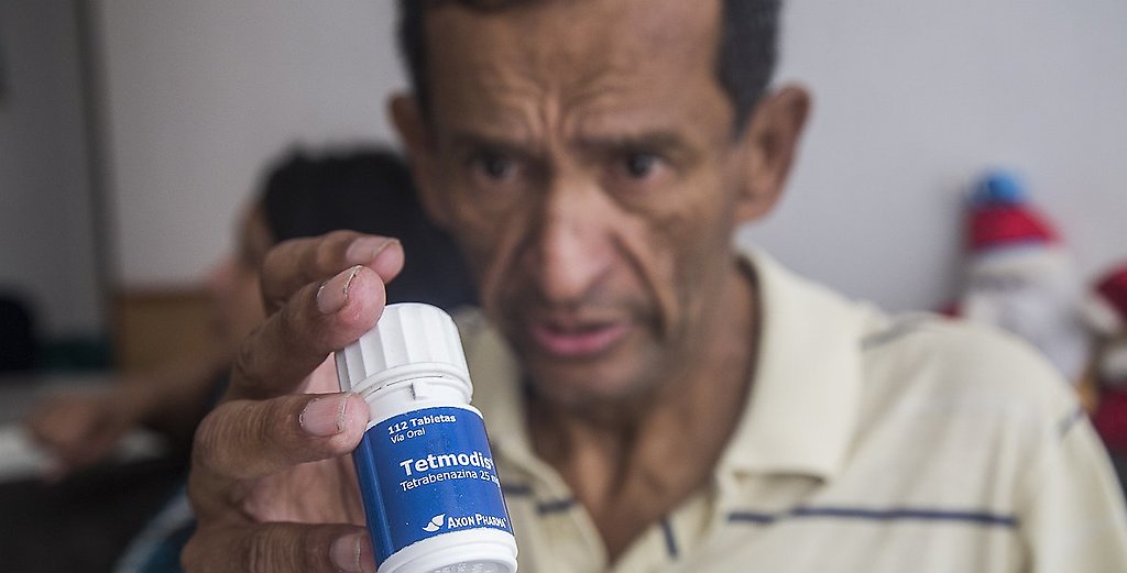 Para controlarlos, los pacientes deben tomar Tetrabenazina (que también tiene el nombre comercial Tetmodis), un medicamento producido en Austria que se comercializa en Venezuela de forma exclusiva por el laboratorio Axon Pharma. Pero es muy caro para el paciente promedio.