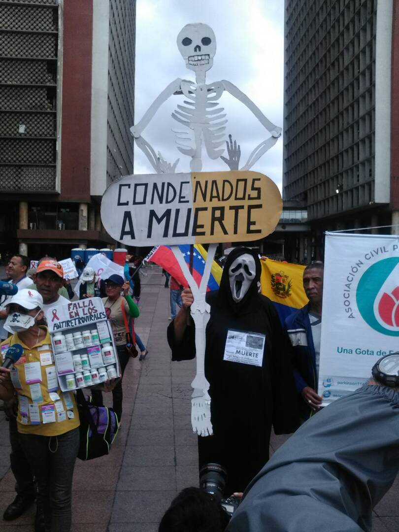 12:07 Así se desarrolla en #Caracas nueva protesta por el derecho a la salud y la vida. Pacientes con VIH, pacientes trasplantados y otros corean "Quienes somos...los pacientes....que queremos....medicinas" frente al Ministerio de salud #VenezuelaNoSeRinde #EmergenciaHumanitaria pic.twitter.com/4Oa69e7MPS