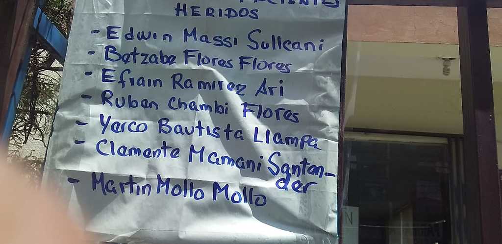 Hasta el Hospital Boliviano Japonés del Distrito 8 llegaron 10 personas heridas (se presume por impacto de proyectil), de los cuales dos eran de gravedad por lo cual fueron traslados a otros centros de salud, según otra radio local. Mientras que en el hospital de el Kenko se contaron otros cinco.