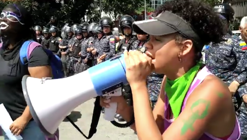 Las manifestantes tenían pensado movilizarse hasta la sede de la Presidencia de la República, en Miraflores, para entregar un documento en la Unidad de Atención a la Víctima, pero un cerco de funcionarios y funcionarias policiales se lo impidió.