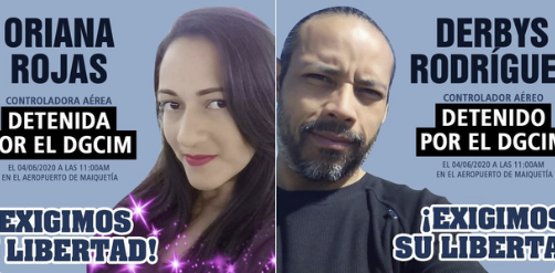 Los detenidos responden a los nombres de Derbys Rodríguez y su novia Oriana Rojas, quienes habían cumplido 15 y 13 años de servicio en el aeropuerto internacional, respectivamente. Sus familiares desconocen el paradero de la pareja, aunque compañeros del terminal les dijeron que fueron trasladados a la sede principal de la Dgcim, en Boleíta, Caracas.