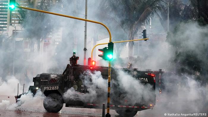 07-05-21.-La Policía ha lanzado "proyectiles múltiples" desde tanquetas a las personas que protestan en Colombia desde hace nueve días y que, justamente, reclaman contra la brutalidad policial que, según la ONG Temblores, ha dejado 37 víctimas mortales, denunció este jueves (06.05.2021) Human Rights Watch (HRW).
