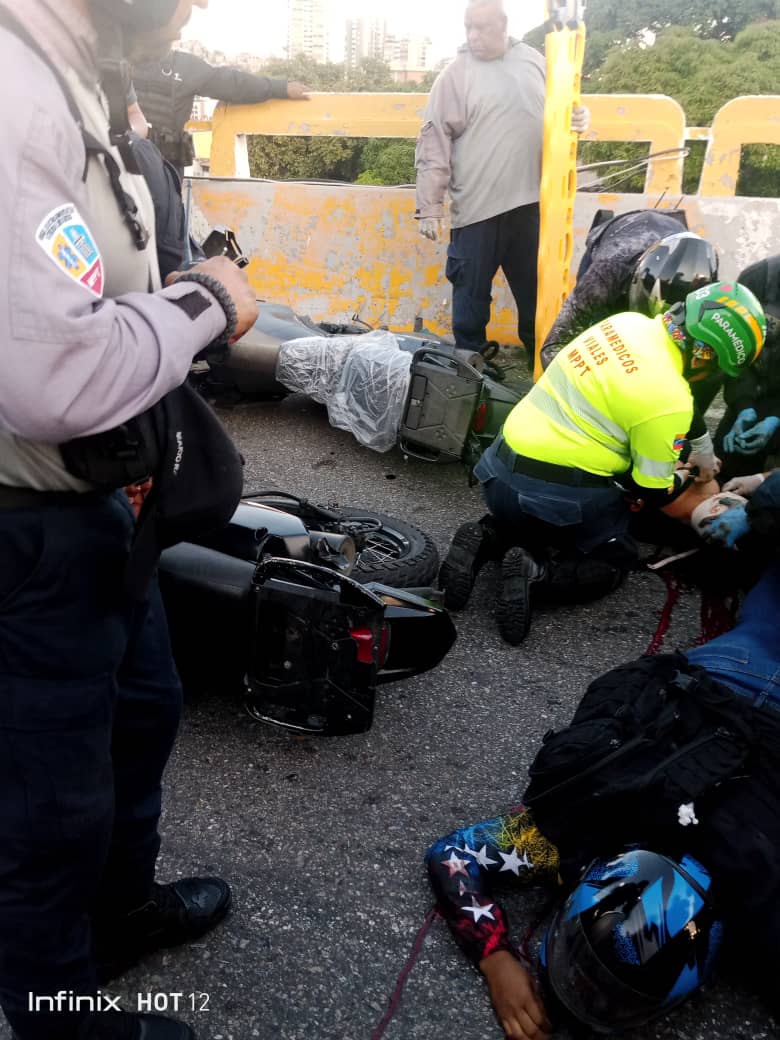 08-08-23.-Tres funcionarios del Cuerpo de Investigaciones Científicas, Penales y Criminalísticas (Cicpc) identificados como Kleyber Vera, Enrique López y Jennifer Medina quedaron tendidos con graves heridas en la avenida Santiago de León del sector La California, municipio Sucre del estado Miranda de Caracas.