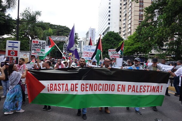 Este sábado cientos de manifestantes se sumaron al apoyo global en favor del pueblo palestino en la capital venezolana. Con banderas de Palestina y consignas en contra del sionismo, los asistentes pidieron el fin del asedio a la Franja de Gaza y el respeto a la legislación internacional.