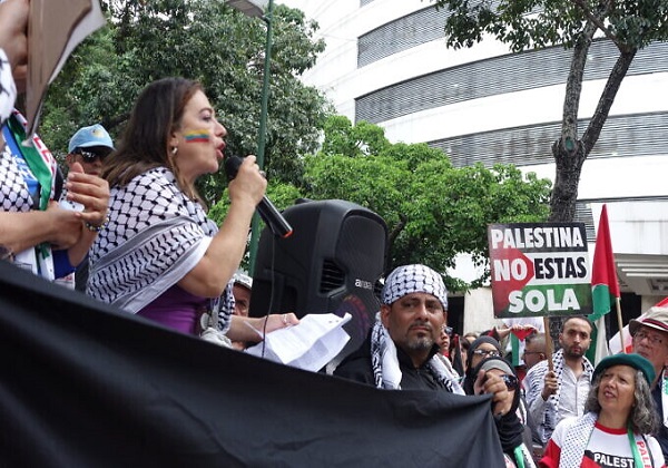 Hindu Anderi, coordinadora del Foro Itinerante de Participación Popular y de la Plataforma de Solidaridad con Palestina declaró que la movilización quiere visibilizar la solidaridad del pueblo venezolano con el pueblo palestino.