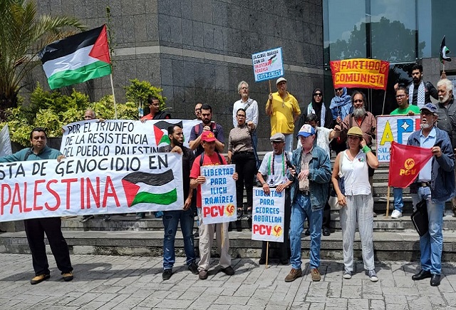 Así lo expresaba una de las consignas que gritaron miembros de varias organizaciones de la izquierda crítica y opositora venezolana, agrupaciones sindicales y populares, ante la sede de las Naciones Unidas en Caracas, para pedir acciones que detengan el genocidio que está cometiendo el Estado de Israel.