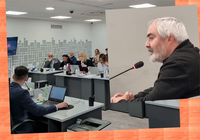 Alejandro Bodart en sesión del juicio que se le sigue por denunciar el genocidio y defender al pueblo palestino, a solicitud de asociaciones israelitas de Argentina.