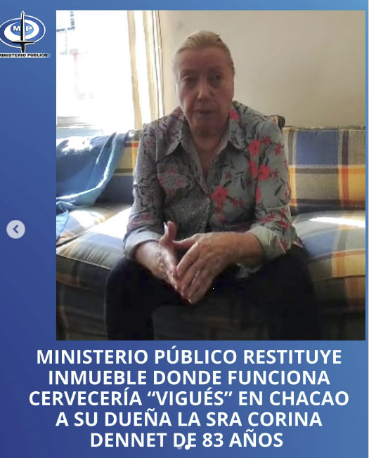 A través de su cuenta en Instagram, la Fiscalía anunció que en base al programa para la Protección del Adulto Mayor, se logró la restitución del local a la señora Corina Dennet, de 81 años de edad.