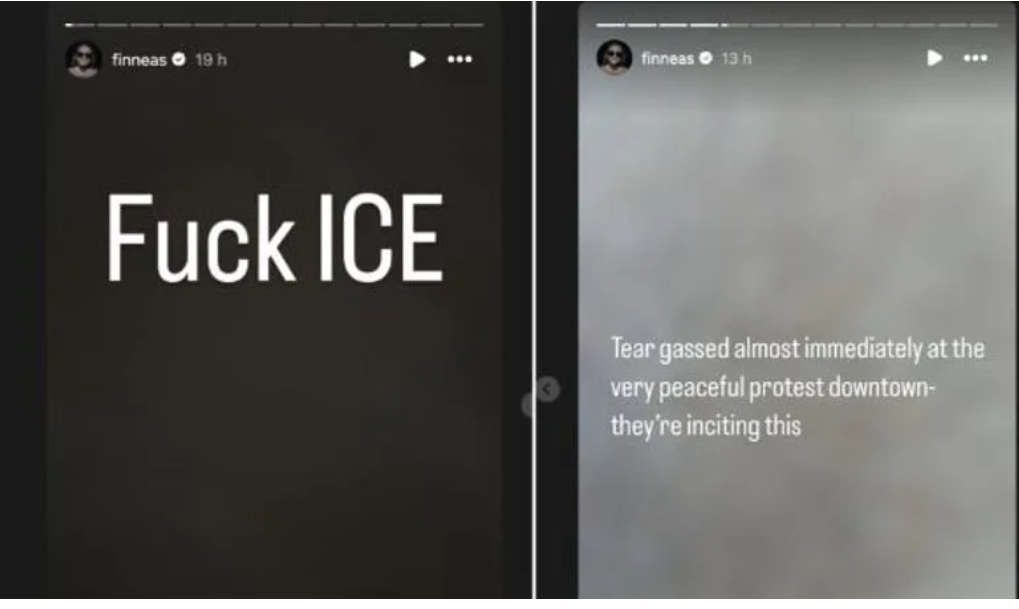 Finneas también volvió a publicar un vídeo en el que aparecía una reportera, Lauren Tomasi, a la que las fuerzas del orden habían disparado en la pierna con una bala de goma mientras informaba desde el lugar de los hechos.