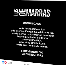 La organización emitió un último comunicado hace un par de semanas en el que ha insistido en "su condena a la masacre que está sufriendo el pueblo palestino" y asegura que el "Viña Rock no financia ninguna causa violenta ni contraria a los derechos humanos, ni directa ni indirectamente". Además, niegan que KKR tenga "ninguna capacidad de decisión sobre la programación, valores o gestión del festival".