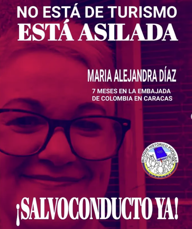 Díaz se encuentra asilada en la embajada de Colombia en Caracas desde el pasado enero, cuando fue objeto de persecución y hostigamiento por parte de organismos de inteligencia policial.