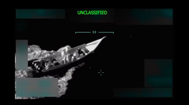 Esta lancha, donde iban como máximo 4 personas con varios paquetes, no se percibe muy bien lo que llevan a bordo, es lo que llamó Trump "un barco cargado de droga". Ahora todo el mundo se pregunta, por qué no detuvieron la lancha con tan insignificante cargamento, que nadie puede comprobar si era droga o no, porque fueron practicamente desintegrados. Por qué no procedieron a detener la lancha y comprobar si la carga era droga y si provenía dicho cargamento de Venezuela, investigar y procesar a los supuestos traficantes. Era necesario tamaña operación de tan exageradas proporciones para desaparecer de un plumazo a esa pequeña embarcación sin dejar ningún rastro. Será verdad que realizaron esa acción, o es una mentira más de Trump y su sequito imperial.