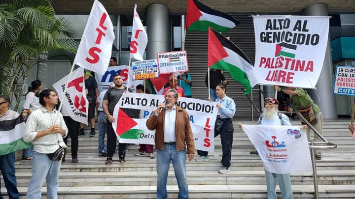 05-09-25.-Como acontece en muchos ciudades y países del mundo, el grito solidario internacional con el pueblo palestino también se hizo sentir en Caracas en la mañana de este jueves 4 de septiembre. Hablamos de un genocidio a cielo abierto y ante los ojos del mundo que lleva adelante el Estado sionista de Israel con la complicidad y apoyo directo de las potencias imperialistas como Estados Unidos y de Europa. Pero son centeneras de miles que a nivel internacional salen a las calles a manifestarse, y en momentos que se encuentra rumbo a Gaza la Global Sumud Flotilla en solidaridad y que busca romper el cerco que le impone a los palestinos el Estado de Israel.
