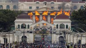 Luego de esta quema, los manifestantes también quemaron las oficinas del medio de comunicación más grande del país, como una muestra de que estaban cansados de la desinformación que hay.