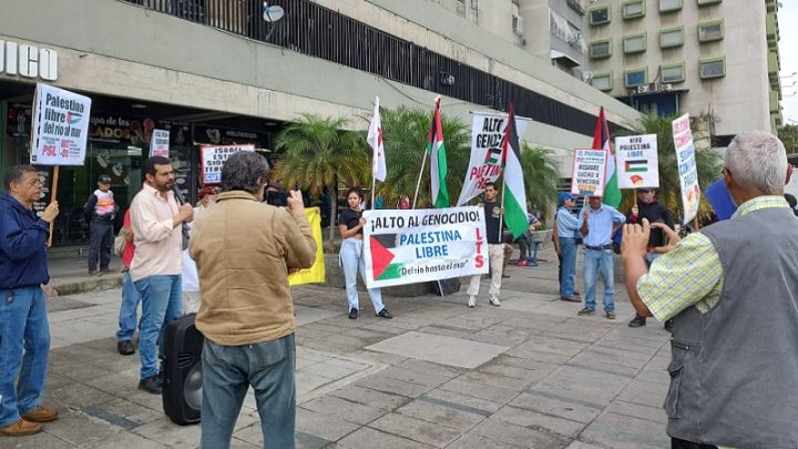 Israel tiene cercada a la Franja de Gaza, impidiendo el ingreso de alimentos, medicinas, agua y combustible, usando el hambre como arma de guerra. Es que estamos ante un genocidio a cielo abierto y ante los ojos del mundo que lleva adelante el Estado sionista de Israel con la complicidad y apoyo directo de las potencias imperialistas como Estados Unidos y de Europa. Como se expresa en el volante que se distribuía durante la actividad: “El pueblo venezolano no puede quedar al margen de este gran movimiento. La causa Palestina es la causa de toda la humanidad”.