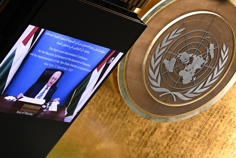El presidente del Estado de Palestina, Mahmúd Abás, se dirige a la Asamblea General de la ONU, el 25 de septiembre de 2025, mediante video. Para hacer uso de este contenido cite la fuente y haga un enlace a la nota original en https://www.primicias.ec/internacional/autoridad-palestina-financiamiento-europa-japon-arabia-saudi-106123/?utm_source=taboola&utm_medium=cpc