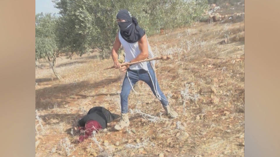 En los territorios ocupados de Cisjordania, la Oficina de Naciones Unidas para la Coordinación de Asuntos Humanitarios afirma haber documentado 71 ataques de colonos israelíes contra palestinos y sus propiedades en solo una semana. Entre las víctimas se encuentra una mujer de 55 años que fue hospitalizada con una hemorragia cerebral, después de que un colono israelí enmascarado la golpeara con una porra hasta dejarla inconsciente. El periodista independiente Jasper Nathaniel, que filmó el domingo los actos de violencia que sufrieron cultivadores palestinos de olivos en la localidad de Turmus Aya de los territorios ocupados de Cisjordania, comparó el ataque de colonos israelíes con una "turba de linchamiento".