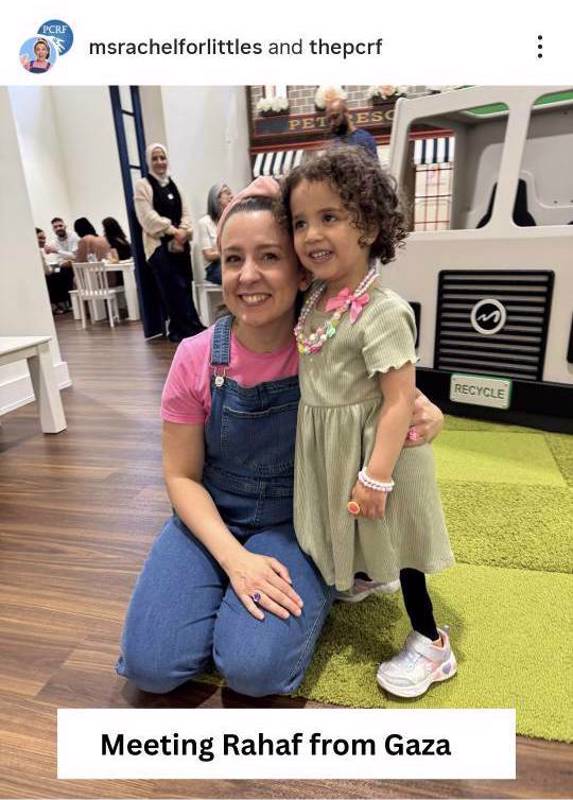 El 12 de mayo de 2025, Ms. Rachel compartió una emotiva publicación presentando a sus seguidores a Rahaf, una niña palestina de tres años que se ha convertido en un símbolo de resiliencia.