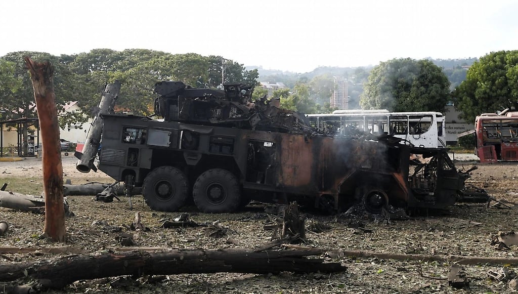 Uno de los dos lanzamisiles Buk destruidos en la base aérea militar de La Carlota, en Venezuela.