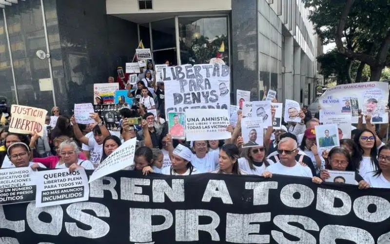 Torreyes afirmó que su esposo, quien fue detenido de forma arbitraria el 2 de septiembre de 2024 en su vivienda en Guri (estado Bolívar), fue torturado y golpeado. Actualmente se encuentra recluido en la cárcel de Yare III. “Solo nos dicen que tenemos que esperar y esperar, ¿hasta cuándo vamos a esperar? Son 17 meses que nuestros familiares se encuentran detenidos”.