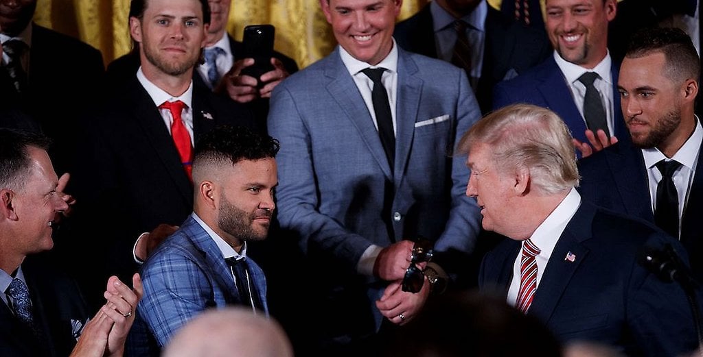 "En el vestuario nunca se habló de la posibilidad de no acudir a la recepción, que es un honor, pero cada jugador es libre de hacer lo que quiera", apuntó en declaraciones a los medios Josh Reddick, que fue el jugador encargado de dar a Trump una camiseta de los Astros con el número 17.