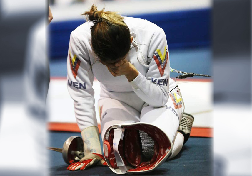 1º junio 2018 - La atleta venezolana María Gabriela Martínez, demostró su pasión y gallardía sobre la pedana este jueves en los XI Juegos Suramericanos Cochabamba 2018, al disputar y ganar la final de la espada femenina por equipo con una lesión en el tobillo.