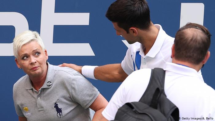 El español Pablo Carreño le acababa de romper el servicio, colocándose con ventaja 6-5 en el primer set, y 'Nole' pagó su frustración golpeando la pelota que le quedaba en el bolsillo hacia la pared, justo en el lugar donde estaba parada la jueza, quien cayó el suelo con gritos de dolor y las manos en el cuello, requiriendo de atención médica.