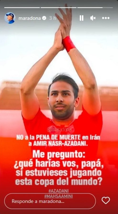 Con el correr de las horas son muchos los que se sumaron a las protestas contra el régimen islámico de origen persa. Desde la cuenta oficial de Diego Maradona, administrada por sus hijos, también expresaron su rechazo.