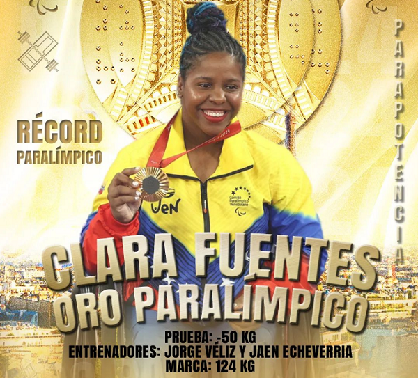 La venezolana Clara Fuentes ganó este jueves la medalla de oro en los 50 kilogramos de la disciplina de halterofilia en los Juegos Paralímpicos de París 2024, al establecer un nuevo record mundial con 124 kilogramos.