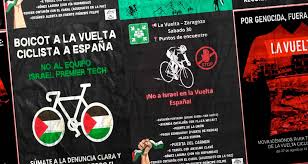 El movimiento Boicot, Desinversión y Sanciones (BDS) , que impulsa el boicot y sanciones tanto a empresas israelís como a multinacionales que venden, abastecen u ofrecen servicios al Estado sionista, llama a señalar mediante acciones pacíficas al equipo de ciclismo de Israel durante el recorrido de la carrera, de la cuarta etapa en la 30ª edición de la Vuelta ciclista , que arribó a España el 27 de agosto. la implicación del Israel en el genocidio palestino. Un año más, la organización de este importante evento deportivo ha invitado al equipo Israel-Premier Tech, propiedad de los multimillonarios israelíes Ron Baron y Sylvan Adams, en un nuevo intento de hacer sportswashing y blanquear la imagen del Estado de Israel.