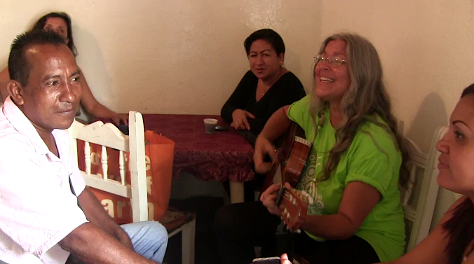 El lunes 29, iniciamos nuestra agenda con la visita a la radio comunitaria, La Sanareña 101.9 FM, junto a Isabel Villarte del colectivo, Maizal, Héctor Cataldo, dirigente sindical y trabajador rural y de la cantante revolucionaria y ambientalista, Leonor Fuguet quien realizó el estreno mundial de una canción de su autoría contra la Monsanto, allí Fuguet interactuó con los radioescuchas de esta zona larense junto a la conductora Ana Teresa Gómez “La Guara”. Allí experimentamos un momento muy emotivo, cuando una admiradora que no suele salir de su casa, la escuchó y se vino inmediatamente a la radio y en la cabina, se dieron un efusivo abrazo.