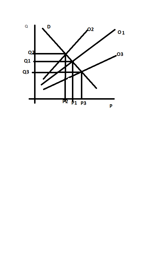 Observemos que a menores precios, mayor D, ya que la oferta sobrepuja la demanda cuando la productividad de las empresas mejora, mientras que la demanda sobrepuja la oferta cuando la productividad desmejora, razón por las cuales los precios de equilibrio P2 y P3 suben o bajan, respectivamente, pero, no como efecto de la oferta y la demanda, sino todo lo contrario.