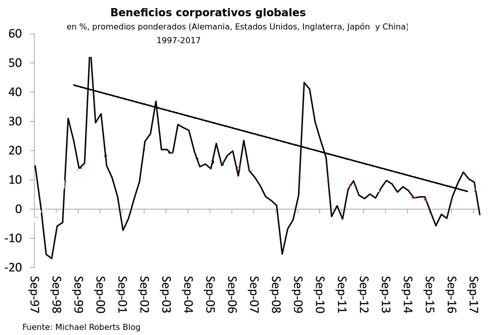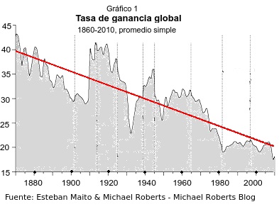 Una de ellas es la declinación tendencial plurisecular de la tasa de ganancia que se fue manifestando a lo largo del siglo XX para llegar más recientemente a una suerte de piso provisorio muy bajo, que probablemente este anunciando una futura caída catastrófica (numerosos indicadores financieros, energéticos, laborales, de demanda, etc. así lo indican) lo que confirma una de las hipótesis decisivas de Marx (Gráficos 1, 2 y 3).