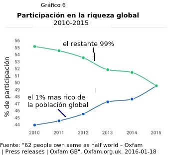 [21] Según un reciente informe de OXFAM: “El 82 % de la riqueza generada (en 2017) fue acaparada por el 1% más rico de la población global mientras que 3,7 mil millones de personas que constituyen la mitad más pobre de la población del planeta no incrementaron su riqueza”, OXFAM, “Richest 1 percent bagged 82 percent of wealth created last year - poorest half of humanity got nothing”, January 2018, www.oxfam.org.