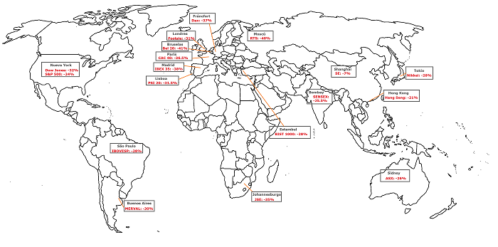 En resumen, entre el 17 de febrero y el 17 de marzo, todas las bolsas del planeta sufrieron importantes pérdidas comparables o superiores a lo que había pasado durante las grandes crisis bursátiles de 1929, 1987 y 2008.
