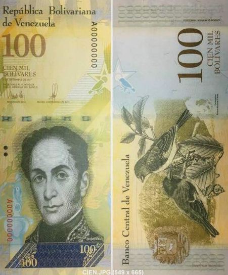 El billete de 100.000 bolívares coexistirá con los de 500, 1.000, 2.000, 5.000, 10.000 y 20.000 bolívares que se incorporaron progresivamente a partir de finales de 2016, así como con el papel moneda puesto en circulación en 2008.