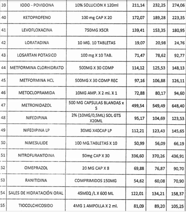 Entre los 56 medicamentos en sus 172 presentaciones se encuentran el acetaminofén, ácido fólico, azitromicina, ciprofloxacina, fenobarbital, ibuprofeno, ketoprofeno, losartán potásico y omeprazol.