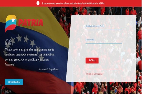 Paso 1: Inicia sesión en la Plataforma Patria con tu número de cédula y tu usuario.