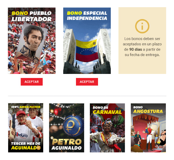 Finalmente, la Plataforma Patria enfatizó que cuando un bono quede sin efecto, automáticamente se puede recibir uno nuevo.