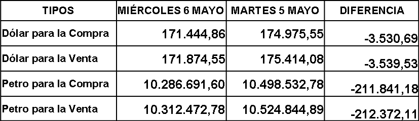 Dólar y Petro Martes 5 de Mayo: https://www.aporrea.org/economia/n354895.html