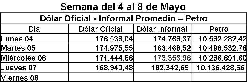 Dólar y Petro Miércoles 6 de Mayo:  https://www.aporrea.org/economia/n354935.html